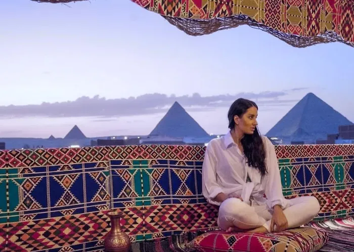 A vegan breakfast is offered to guests daily. The pizzeria Mermaid Restaurant is within a few blocks of King Pharaohs Giza Pyramids View Hotel.